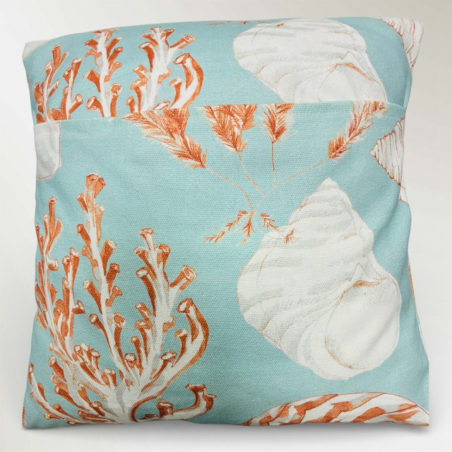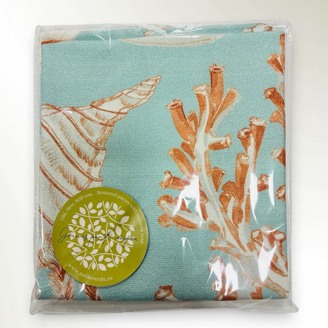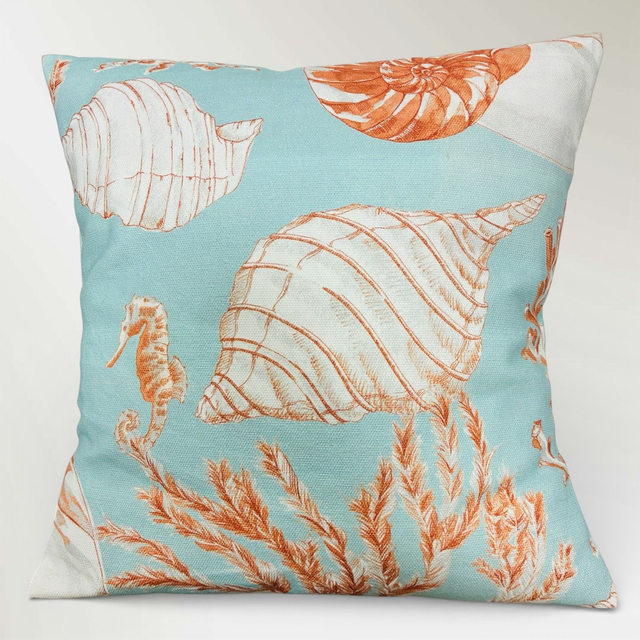 Transforma tu rincón favorito en una terraza mediterránea con el cojín "Brisa del Egeo". Esta pieza exclusiva, confeccionada totalmente a mano, destaca por su evocador estampado de inspiración naturalista: delicados caballitos de mar, caracolas y corales dibujados en tonos terracota y óxido que contrastan elegantemente sobre un fondo azul aguamarina.